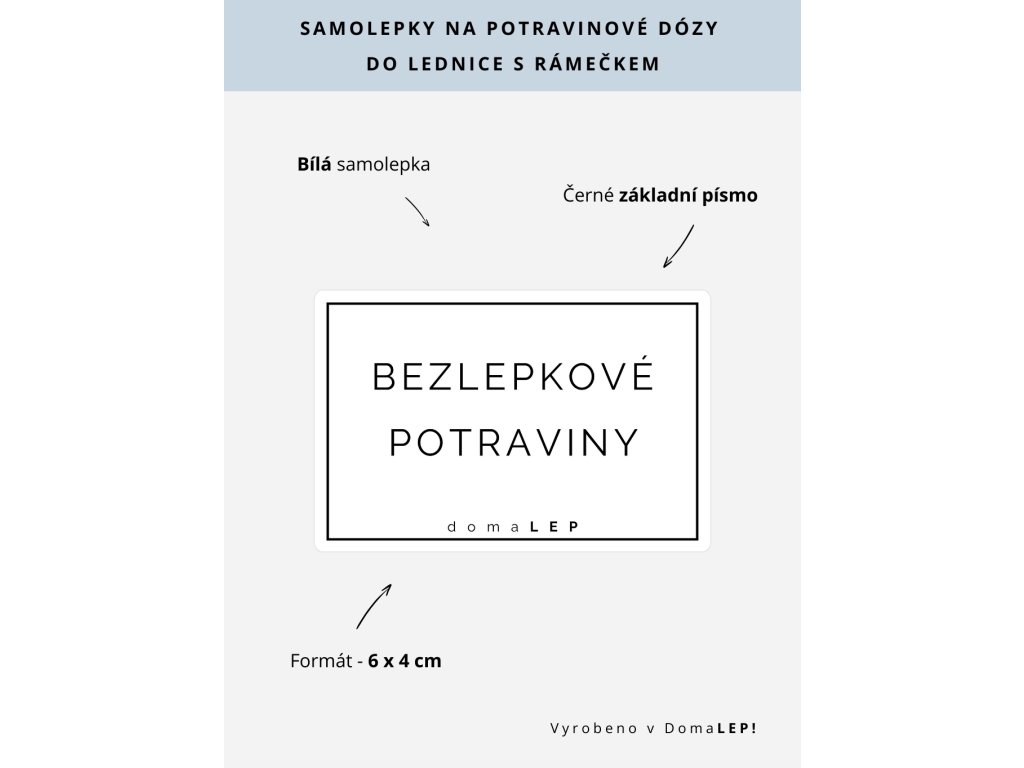 ORGANIZAČNÍ SAMOLEPKY NA BOXY, DÓZY A ŠUPLÍKY DO LEDNICE. Efektivní řešení pro přehledné uspořádání lednice. Bílá samolepka s rámečkem BEZLEPKOVÉ POTRAVINY v základním písmu pomáhá minimalizovat plýtvání potravinami, urychluje orientaci a přináší harmonii do každodenního fungování domácnosti. Uspořádejte svou lednici s lehkostí a elegancí díky našim praktickým štítkům.