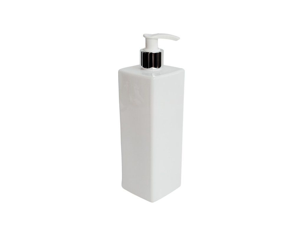 Dávkovač na mýdlo 500 ml bílý s bílo-stříbrnou pumpičkou LUNA je praktickým pomocníkem pro každodenní použití v domácnosti. Jedná se o hranatou plastovou lahvičku vyrobenou z recyklovatelného materiálu (PET), která umožňuje pohodlné a přesné dávkování bez zbytečného plýtvání a pomáhá udržet prostor čistý a organizovaný.