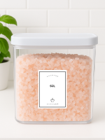 HIMALÁJSKÁ SŮL 6 x 8 cm – bílá v základním písmu, omyvatelná samolepka na potravinové dózy