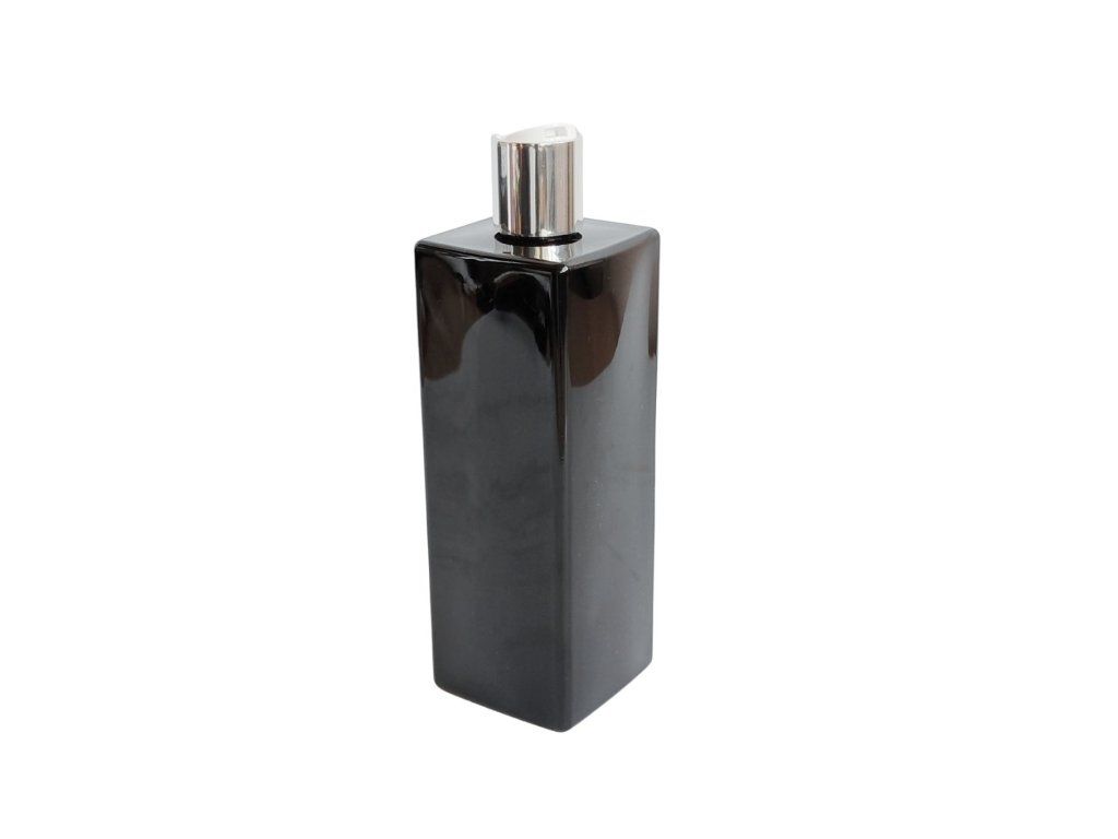 Hranatý tvar působí moderně a umožňuje efektivní uspořádání prostoru – lahvičky lze snadno řadit vedle sebe bez zbytečných mezer.