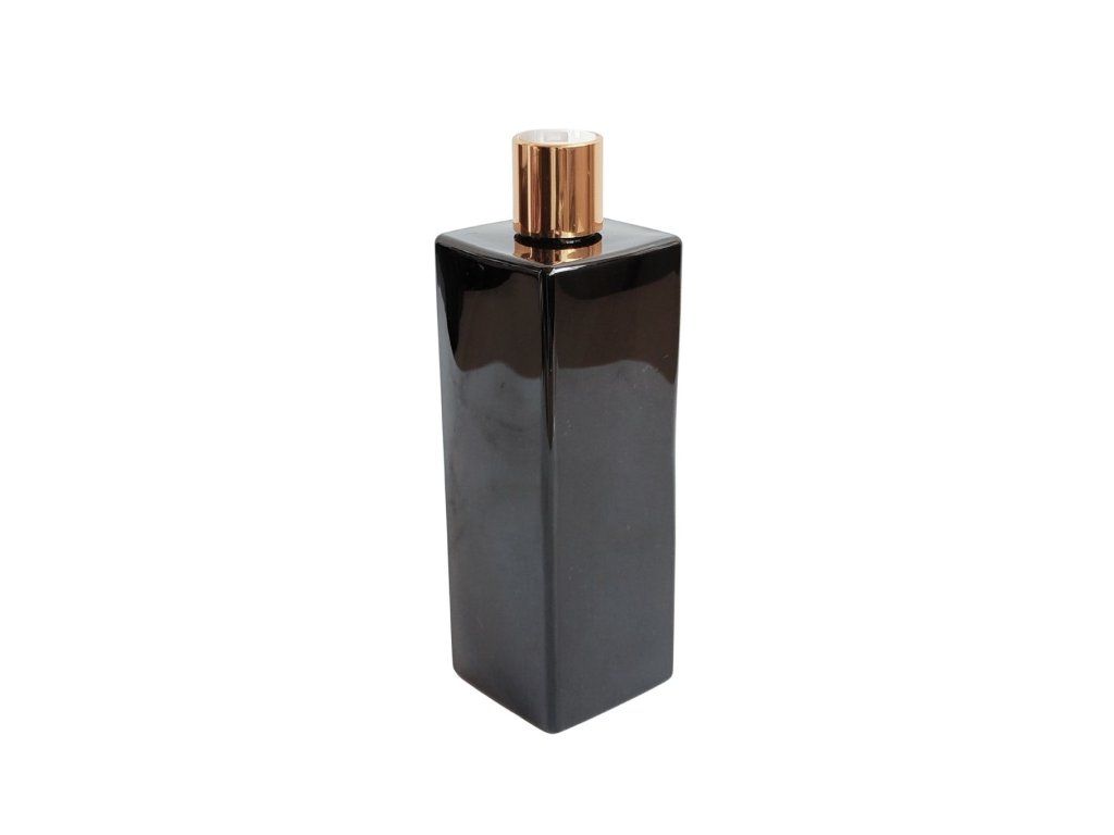 Hranatý tvar působí moderně a umožňuje efektivní uspořádání prostoru – lahvičky lze snadno řadit vedle sebe bez zbytečných mezer.