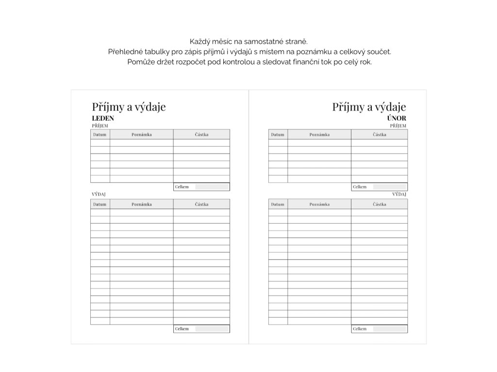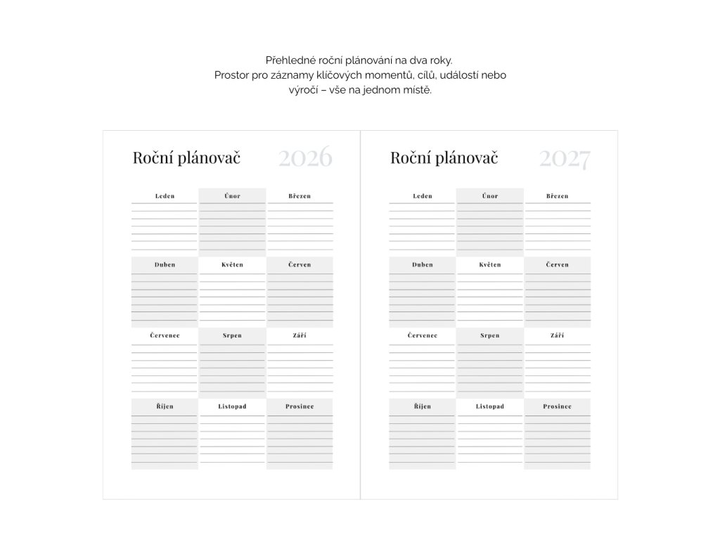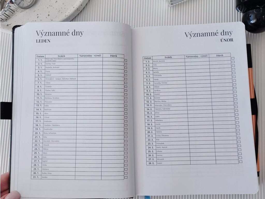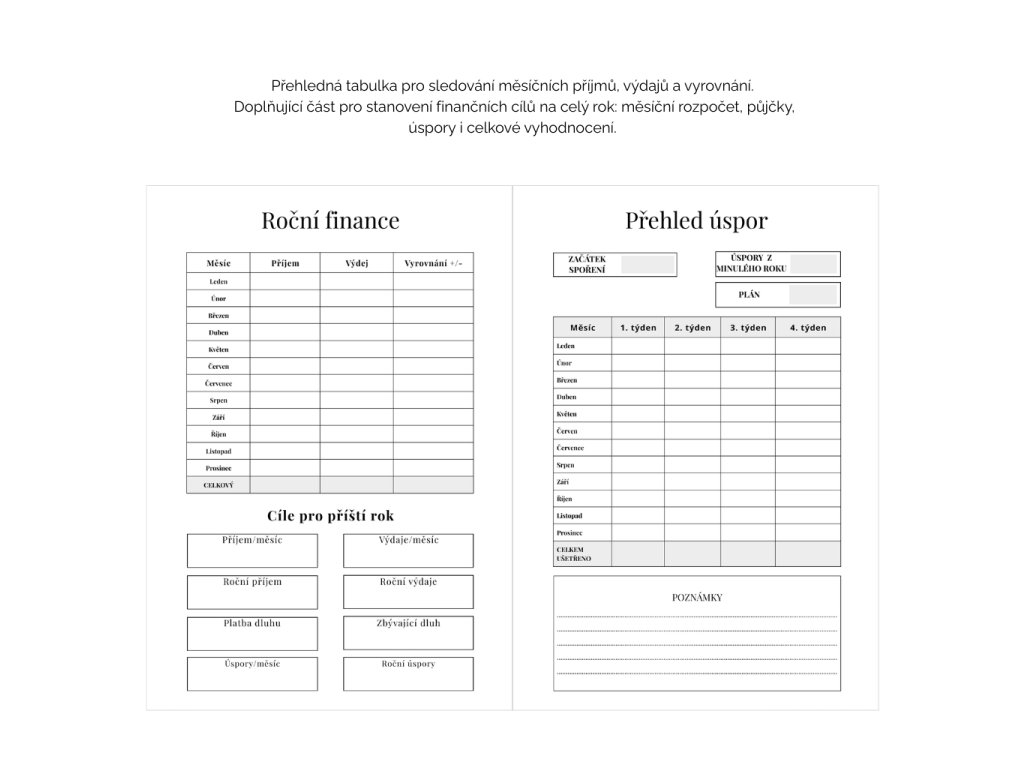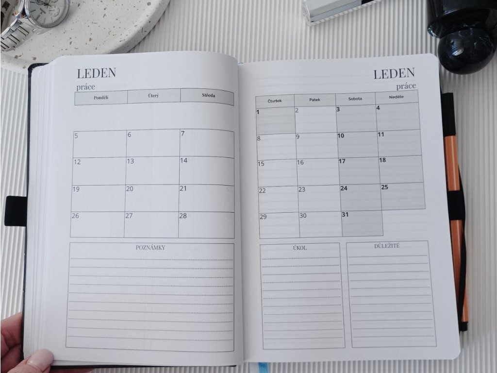 Ve spolupráci s Agátou Hanychovou jsme navrhli jedinečný multifunkční diář v českém jazyce, který slouží jako každodenní organizér, plánovač, i praktický pomocník pro finance, zdraví, práci, rodinu i čas pro sebe.
