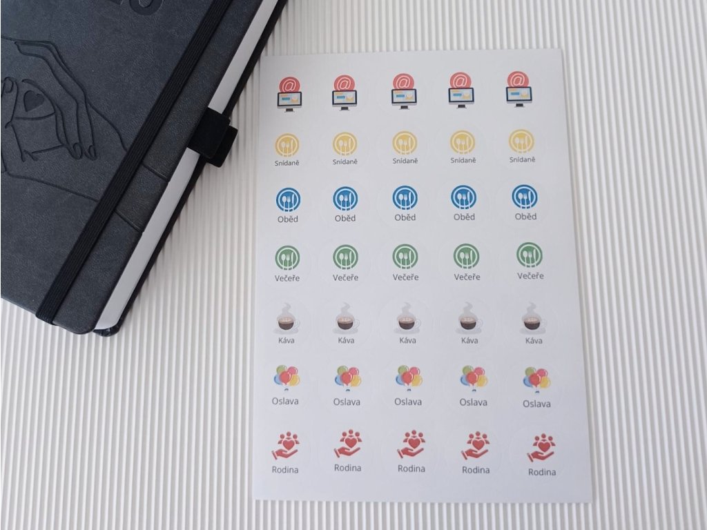 Součástí budou i barevné samolepky pro jednotlivé kategorie – pro ještě větší přehlednost.