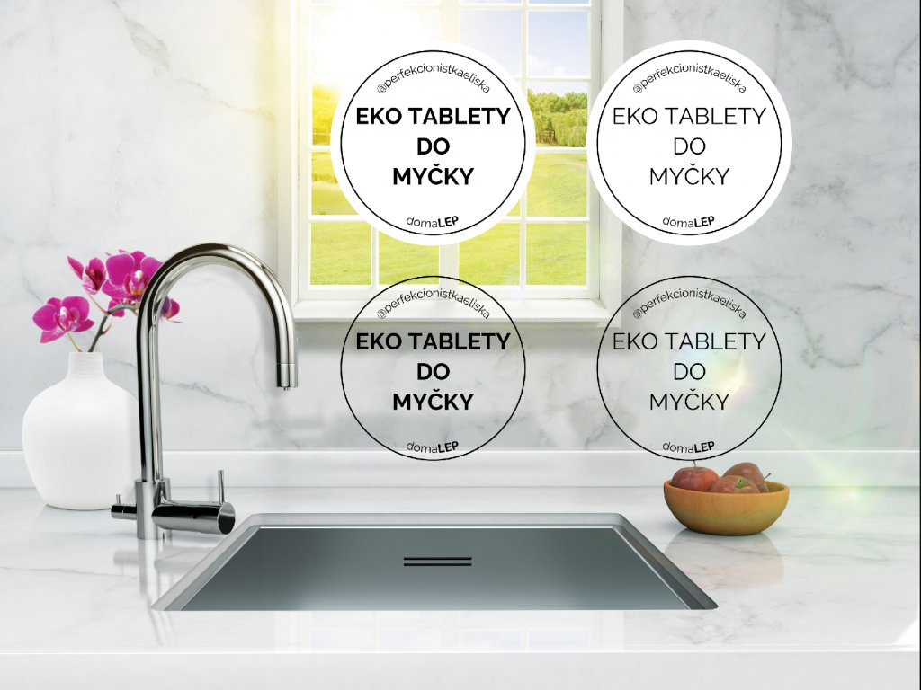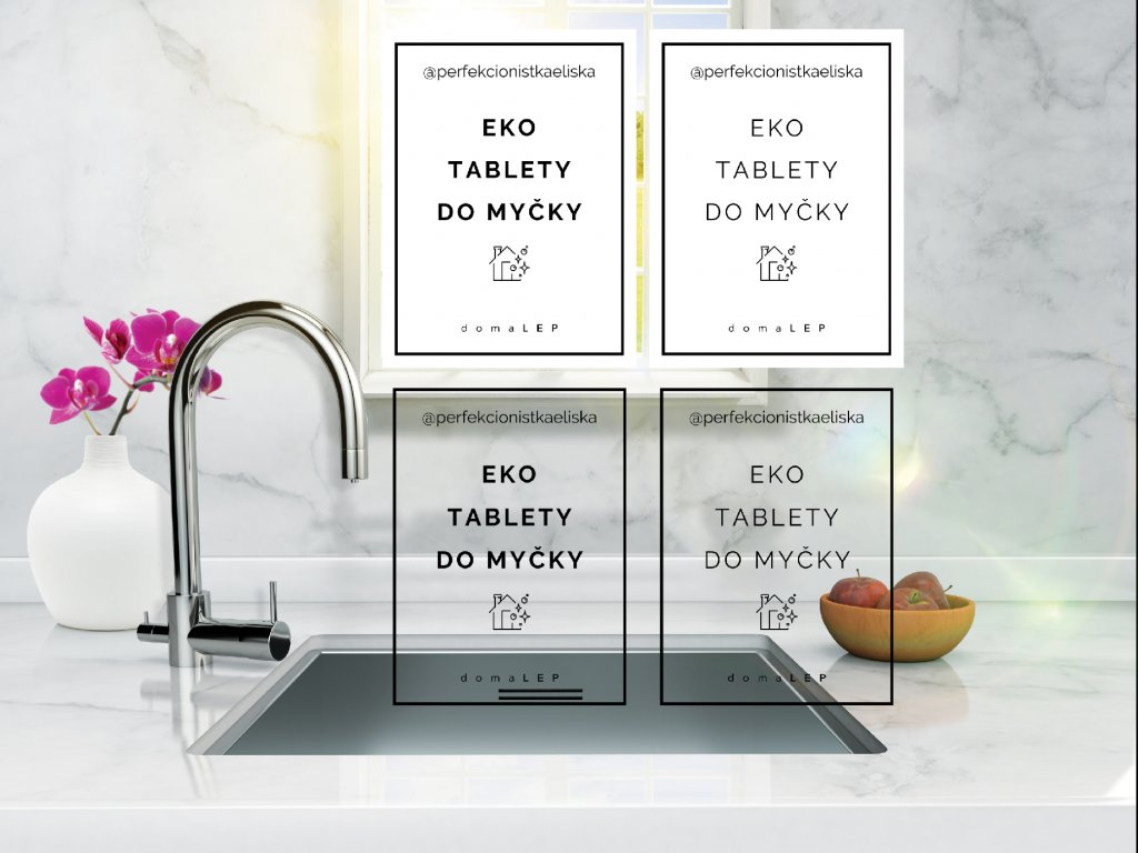 EKO TABLETY DO MYČKY - vinylová voděodolná omyvatelná samolepka na dózy / na úklid