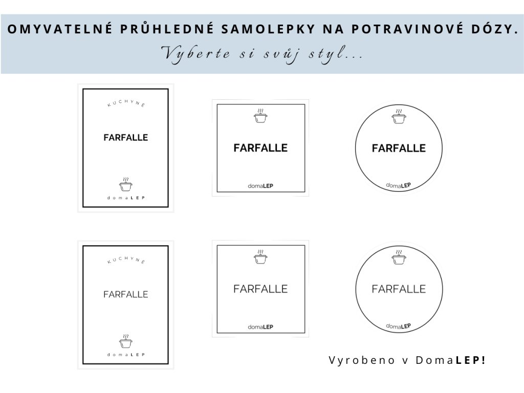 Organizační samolepky, etikety a štítky na nádoby a potravinové dózy FARFALLE