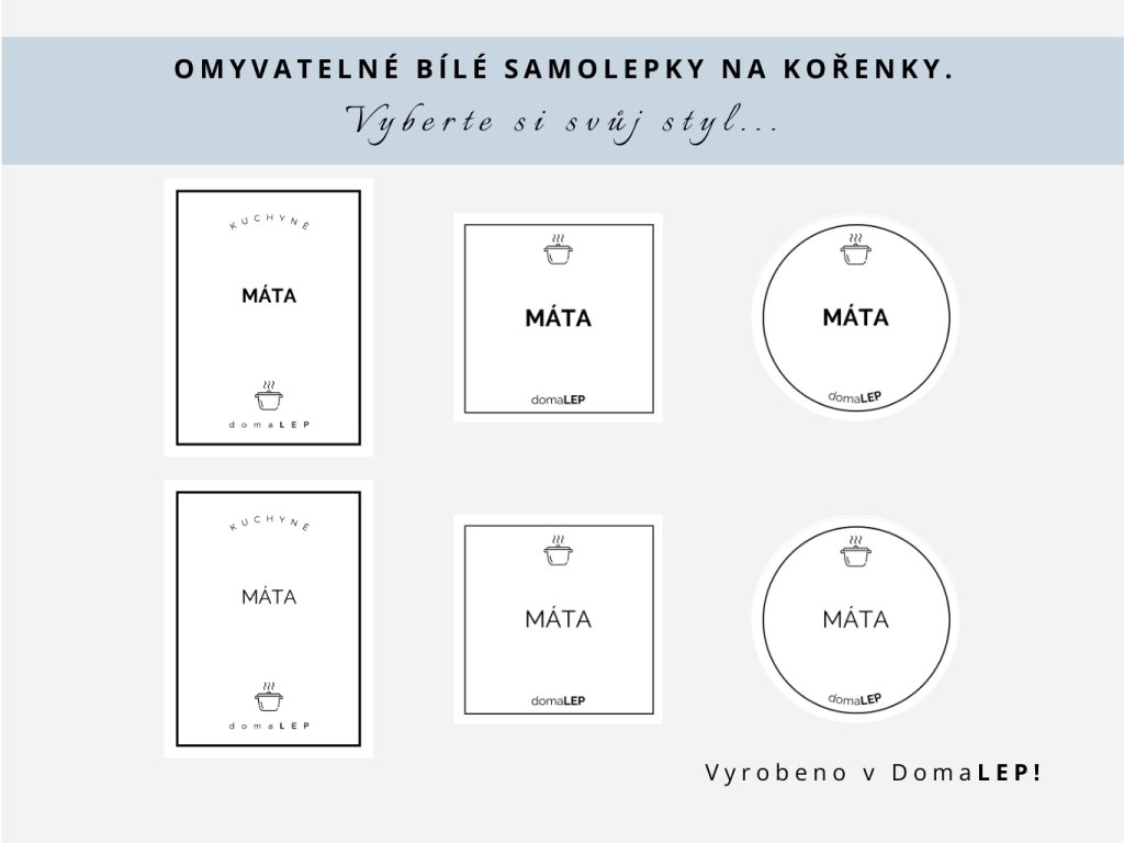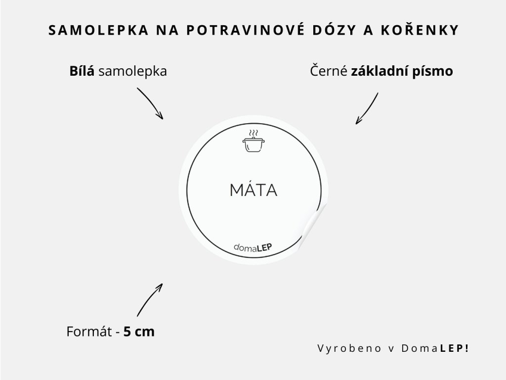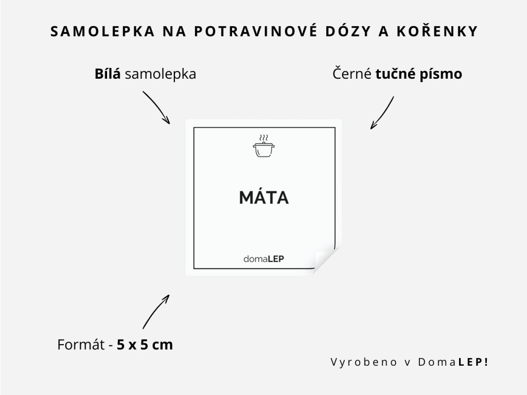 - Univerzální použití: Naše samolepky jsou vhodné na plastové, skleněné, keramické nebo nerezové nádoby. Díky hladkému povrchu se snadno aplikují a pevně drží na svém místě.