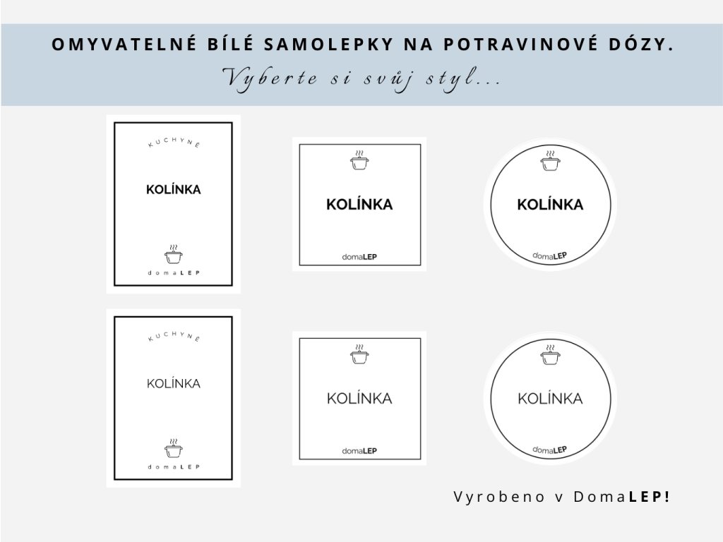 Organizační samolepky, etikety a štítky na nádoby a potravinové dózy KOLÍNKA