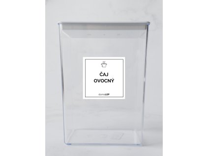 ČAJ OVOCNÝ rozměr 6 x 8 cm – bílá vinylová, voděodolná, omyvatelná samolepka na dózy, základní písmo