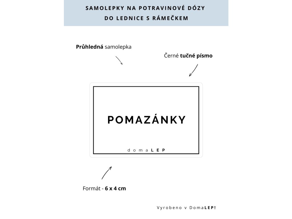 POMAZÁNKY průhledná samolepka s rámečkem, tučné písmo, rozměr 6 × 4 cm na boxy, šuplíky a dózy do lednice