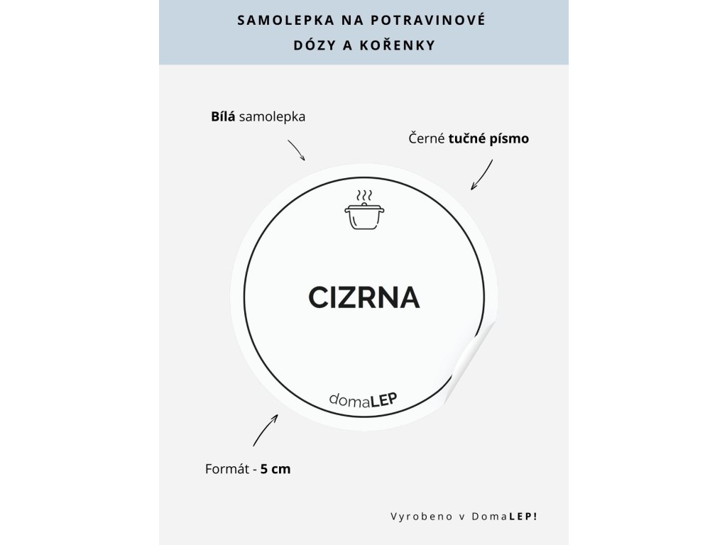 CIZRNA – bílá samolepka o průměru 5 cm v tučném písmu usnadní přehledné označení potravinových dóz.