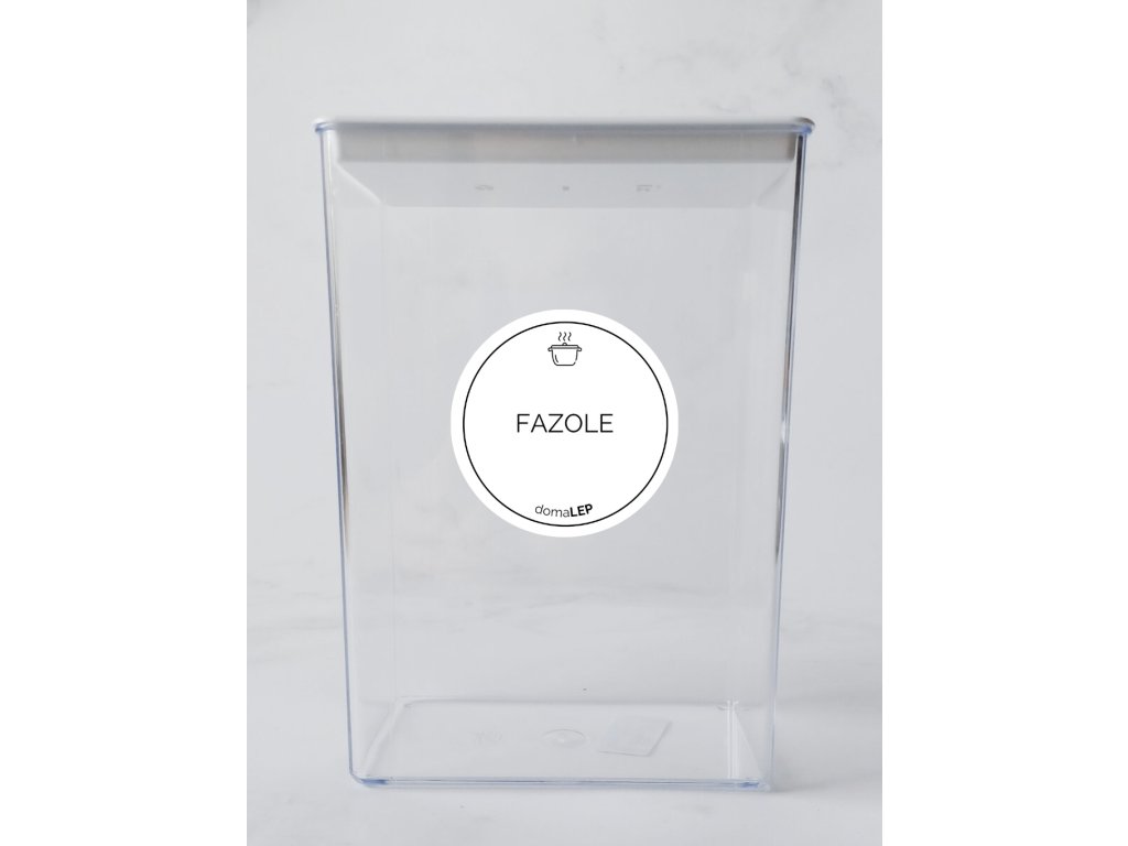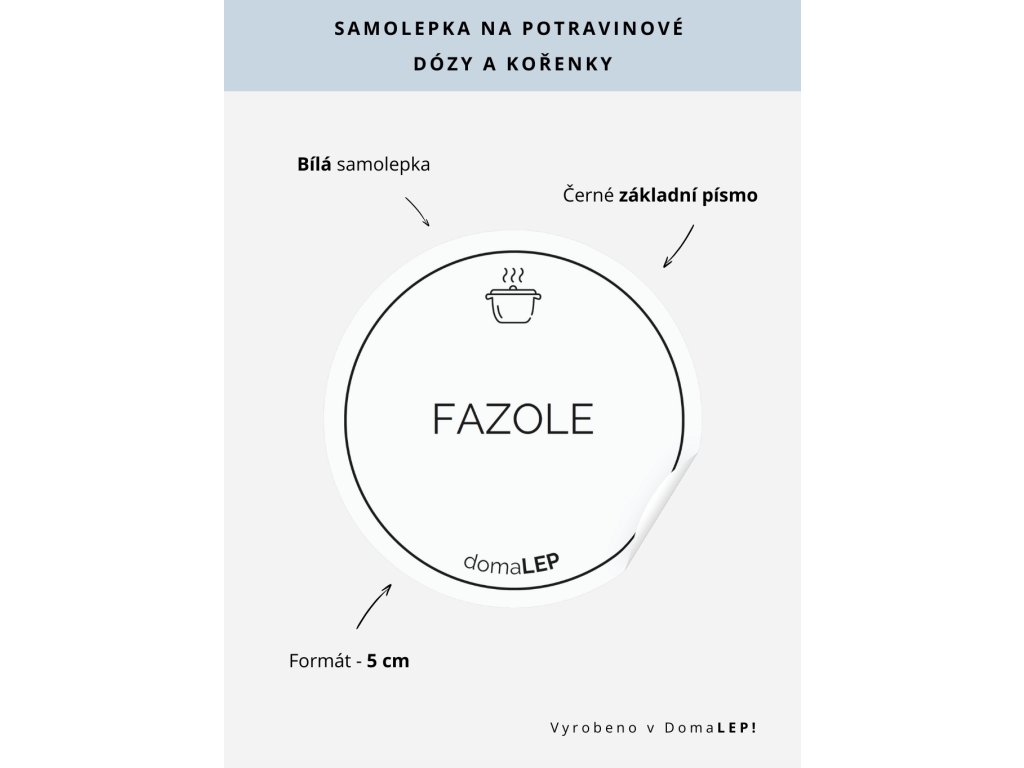 FAZOLE – bílá samolepka o průměru 5 cm v základním písmu usnadní přehledné označení potravinových dóz.