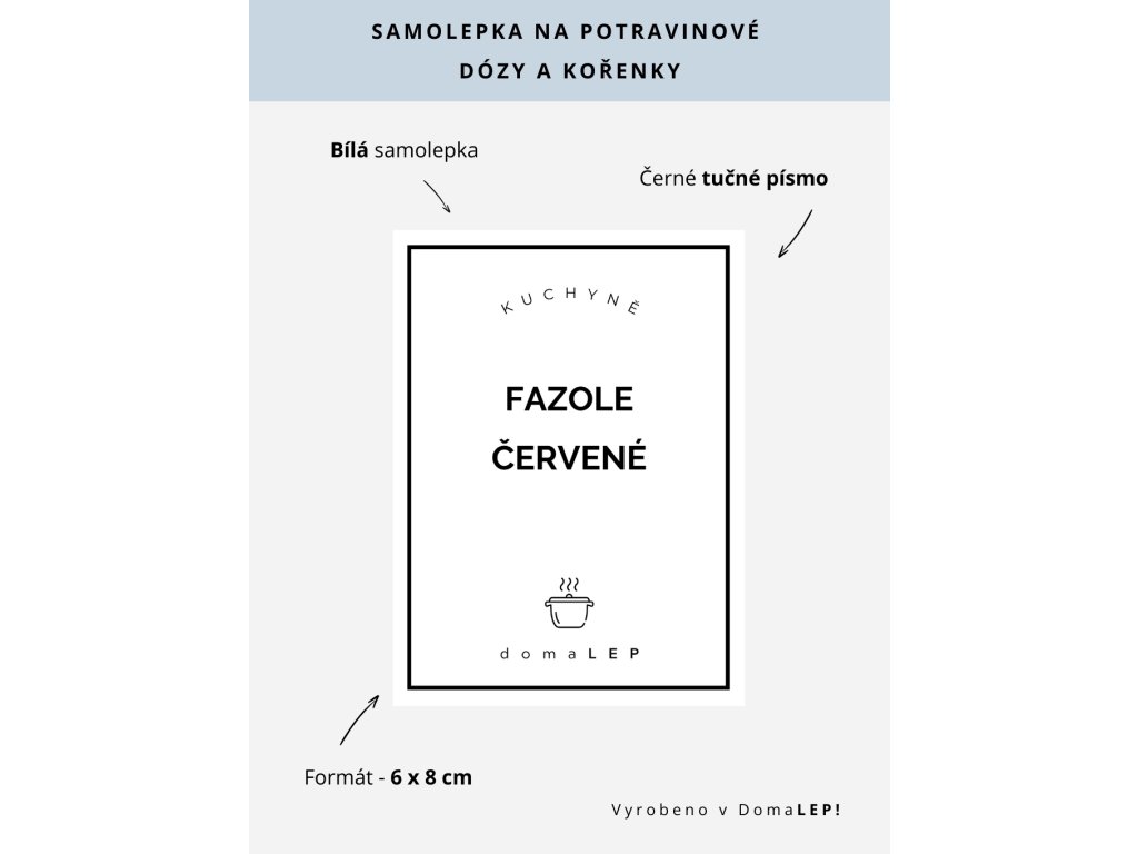 FAZOLE ČERVENÉ 6 × 8 cm – bílá vinylová, voděodolná, omyvatelná samolepka na dózy, tučné písmo