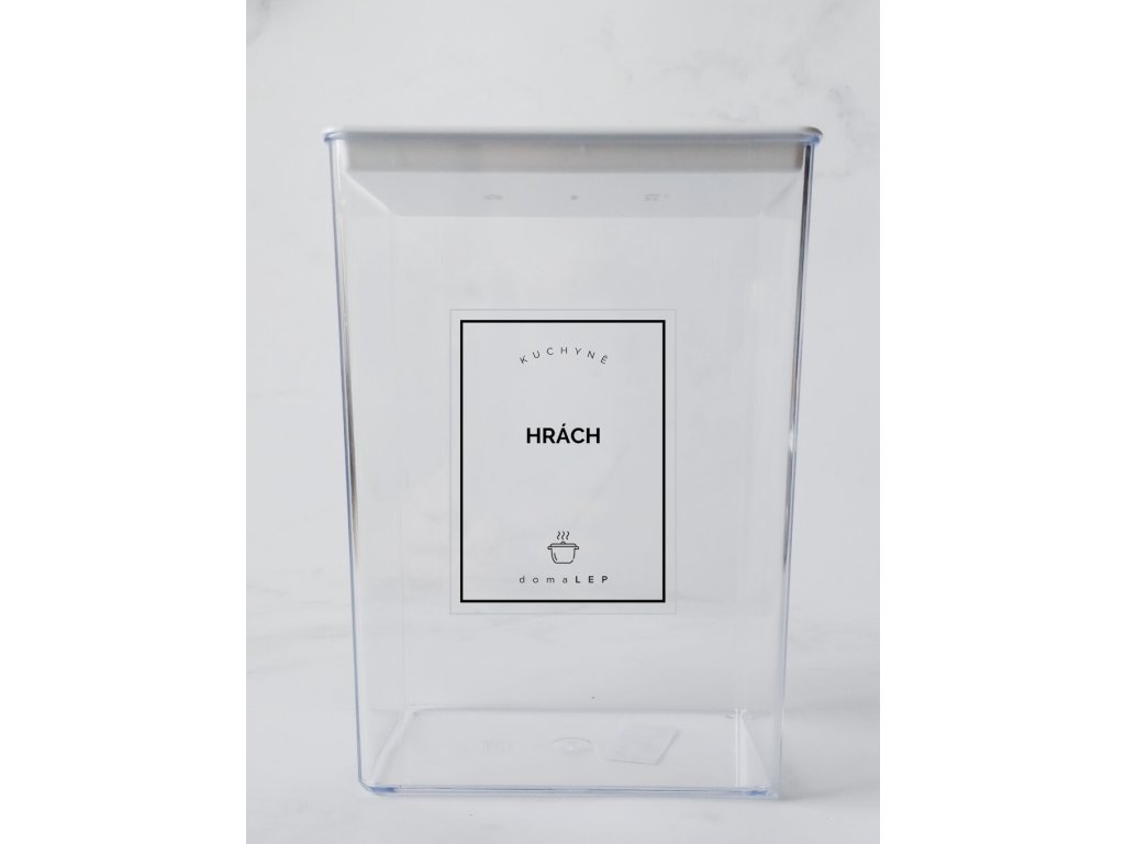 HRÁCH – průhledná samolepka o rozměru 6 × 8 v tučném písmu usnadní přehledné označení potravinových dóz.