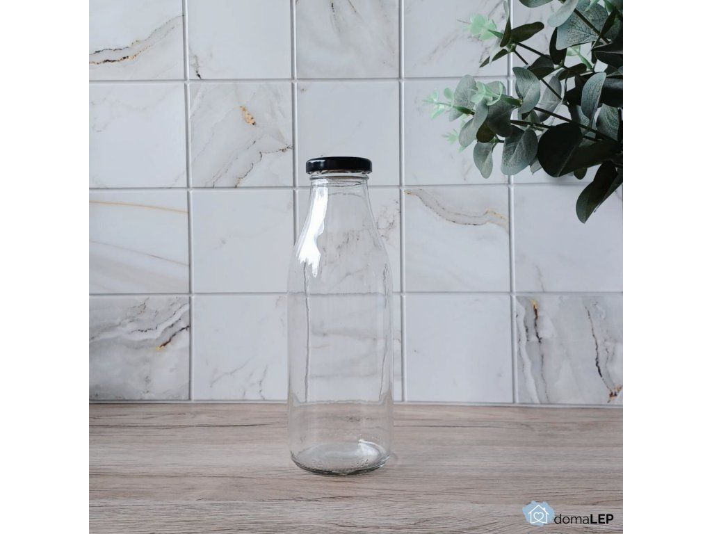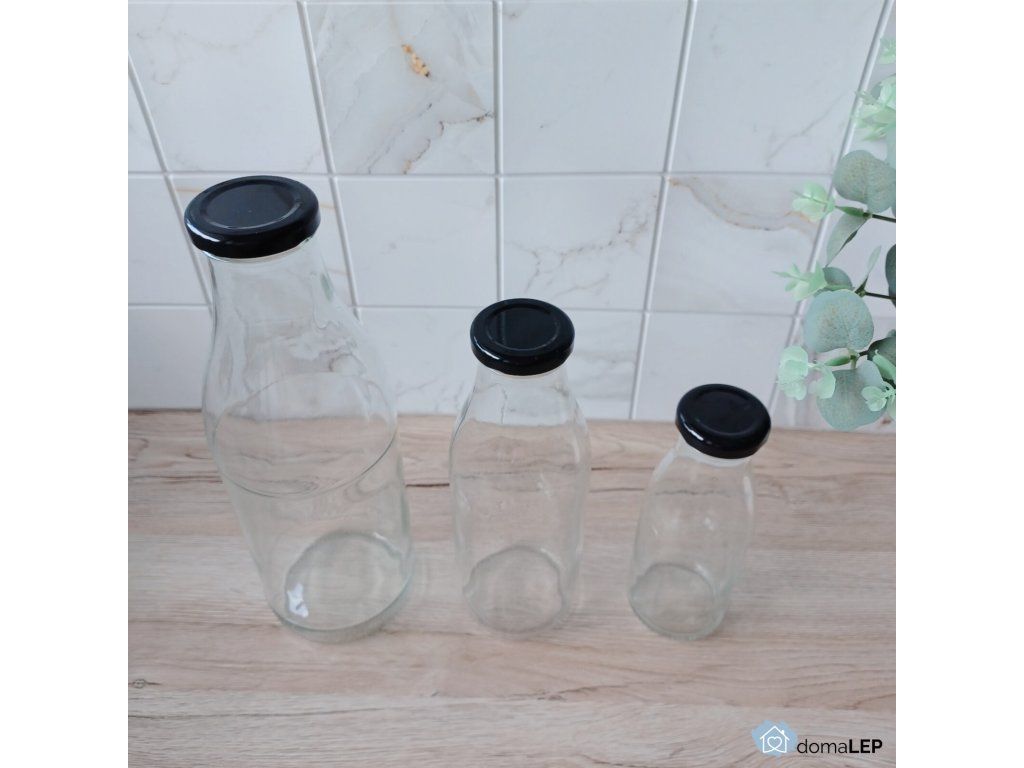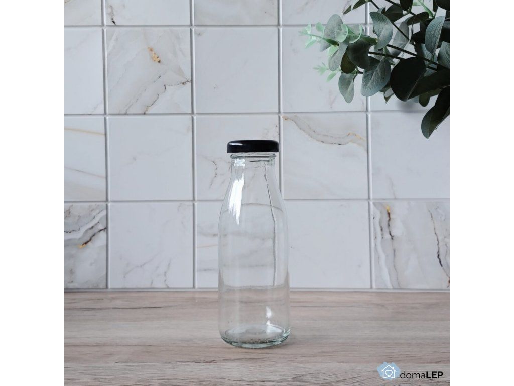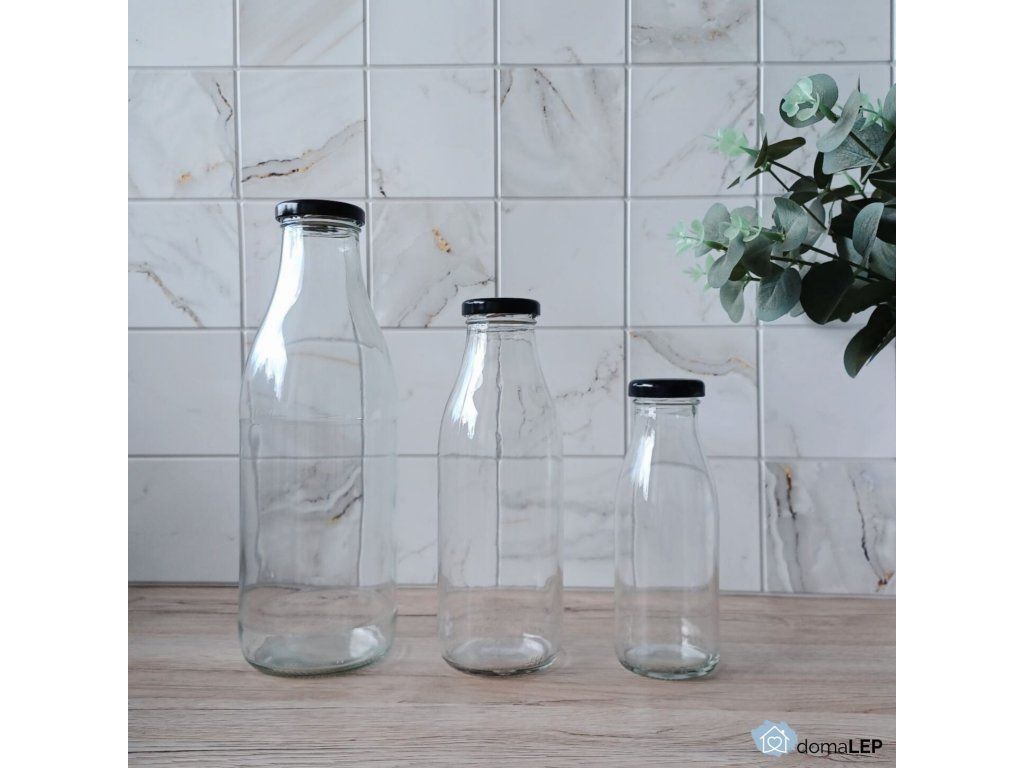 Skleněná láhev na mléko 250 ml čirá s černým víčkem FRANC