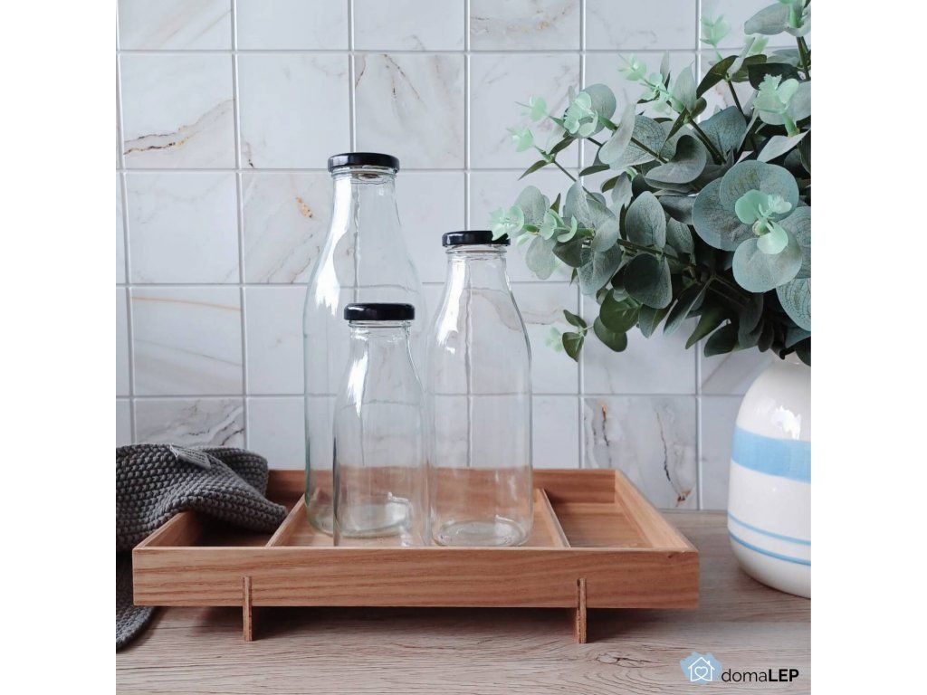 Skleněná láhev na mléko o objemu 250 ml je praktickým pomocníkem pro každodenní použití v domácnosti. Je vhodná nejen na mléko, ale také na džusy, sirupy nebo úklidové prostředky, například aviváže. Díky provedení s černým víčkem je vhodná pro pohodlné uzavření a skladování tekutin. Láhev je vyrobena z kvalitního skla, které neovlivňuje chuť ani vůni uložených tekutin.