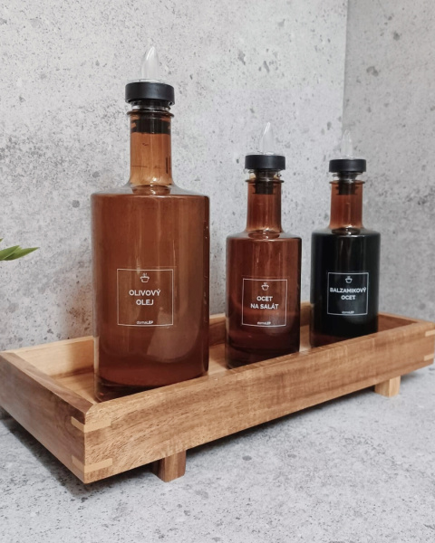 Hnědá skleněná láhev VILO 200 ml s uzávěrem tmavé dřevo