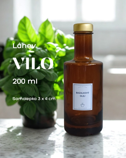 Hnědá skleněná láhev VILO 200 ml se zlatým uzávěrem