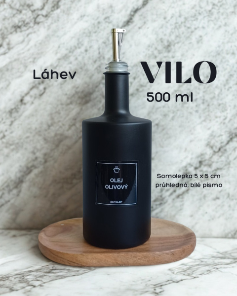 Černá matná skleněná láhev VILO 500 ml s čirou nálevkou