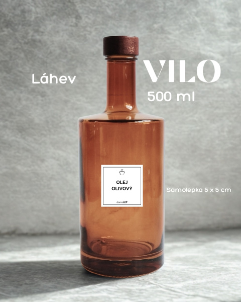 Hnědá skleněná láhev VILO 500 ml se stříbrným uzávěrem