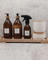 Skleněná jantarová lahvička MONA 500 ml s uzávěrem v barvě přírodního dřeva