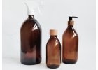 Skleněná jantarová láhev MONA 1 000 ml s bílým rozprašovačem
