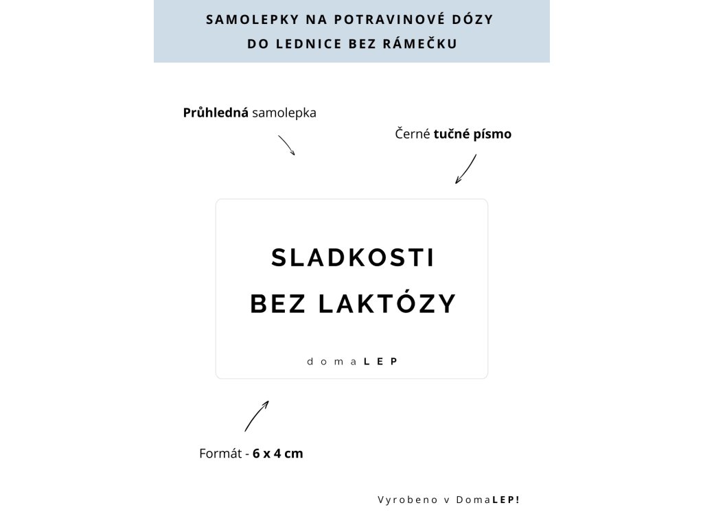 SLADKOSTI BEZ LAKTÓZY průhledná samolepka bez rámečku, tučné písmo, rozměr 6 × 4 cm na boxy, šuplíky a dózy do lednice